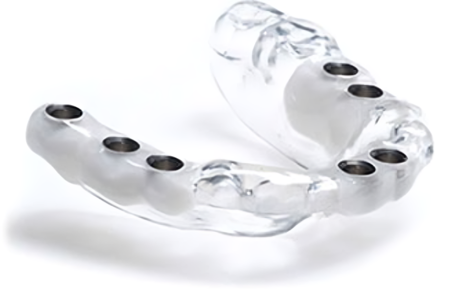 To guarantee efficient and accurate placement of your implants, Dr. Ahmed Manassra manufactures and uses a surgical guide during your procedure. A surgical guide is a template that fits over the dental arch and marks exactly where and at what angle to place each implant, exactly as plotted in in the treatment planning software.