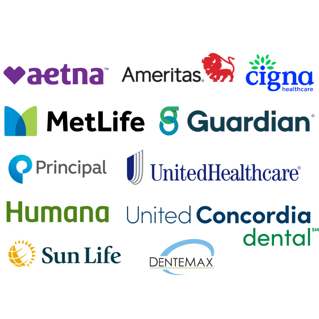 Aetna • Ameritas • Cigna • MetLife • Guardian • Principal • UnitedHealthcare • Humana • United Concordia • Sun Life • DenteMax